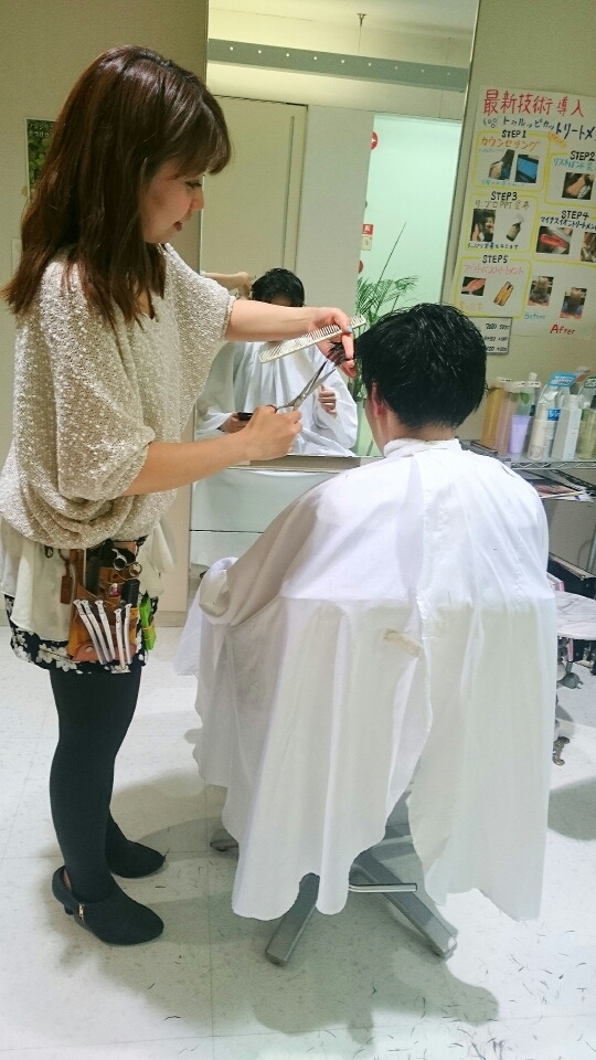 まだ、切れないスタッフに切ってもらったりします。