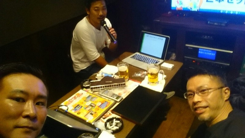 場所を移動してオケカラで明日からのプレゼンの前哨戦です。
