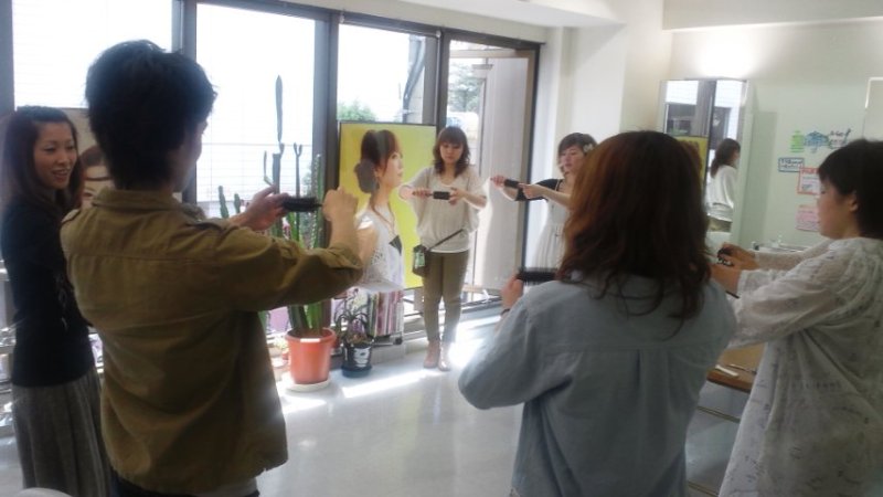 アシスタントは、シザーワークやブラシ回し。