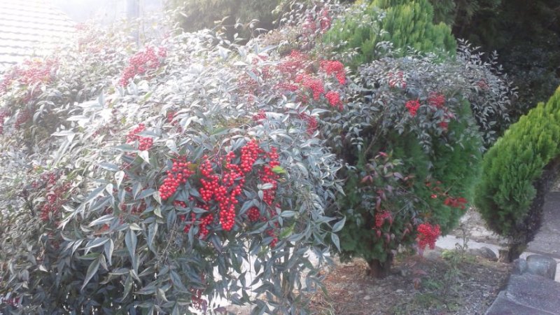 なんてんの実がいっぱいで綺麗やった。