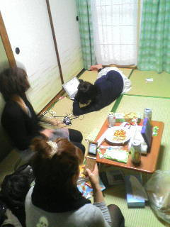 たこパーが終了してのんびり中。約1名自分の家のようにくつろいでます。
