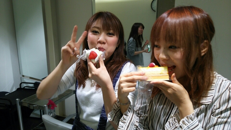 ミキとまやがケーキを美味しそうに食べてます![]()