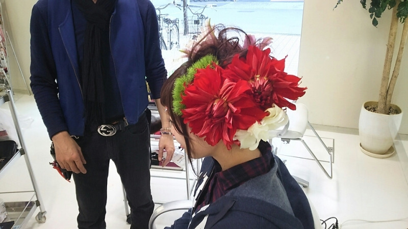 小野さんがアシスタントのむっちゃんの成人式ヘアセットをしてました![]()