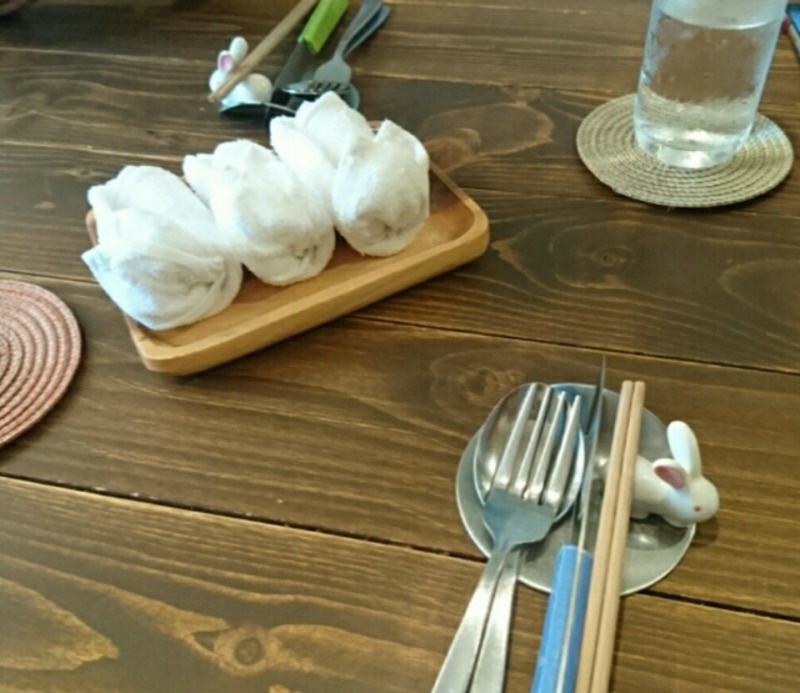 rabbitだけにウサギの箸置きや、おしぼりがウサギになってました![]()