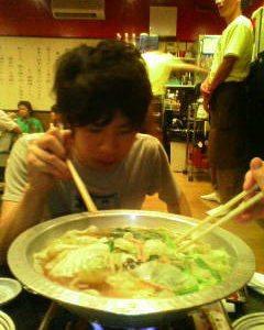 2009/10/24田家君のスタイリストに合格しました。 その合格祝いにもつ鍋です。 たまには、熱い夏に鍋も有り …