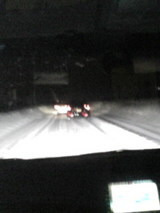 2009/10/24高速ですが、雪が振りすぎです。 時速五キロ。 大変ですわ。 すごいわ。 年越しに現地に着かなさそうやわ。